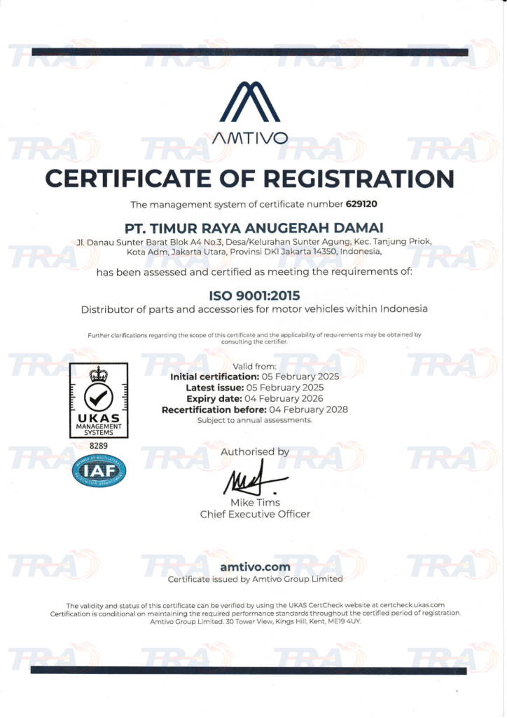 Following the dynamic change in business environment, we implement modern warehousing and operational system with the purpose of providing greater services to our customers more efficiently. We also equip ourselves with experienced dedicated team, specialized in handling automotive spare parts with commitment to maintain long-term business partnerships. In addition to quality products and greater customer services, maintaining a reliable/trustworthy business is among our highest priority.
